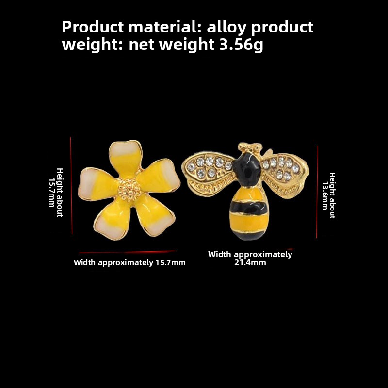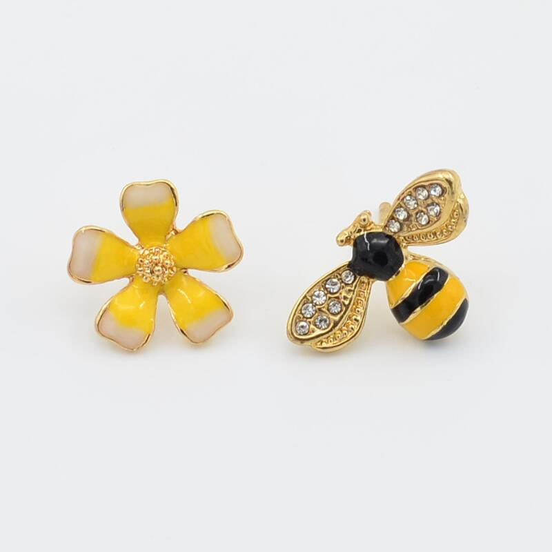 Asymmetric Design: Unique and stylish earrings with an asymmetrical flower and bee motif.