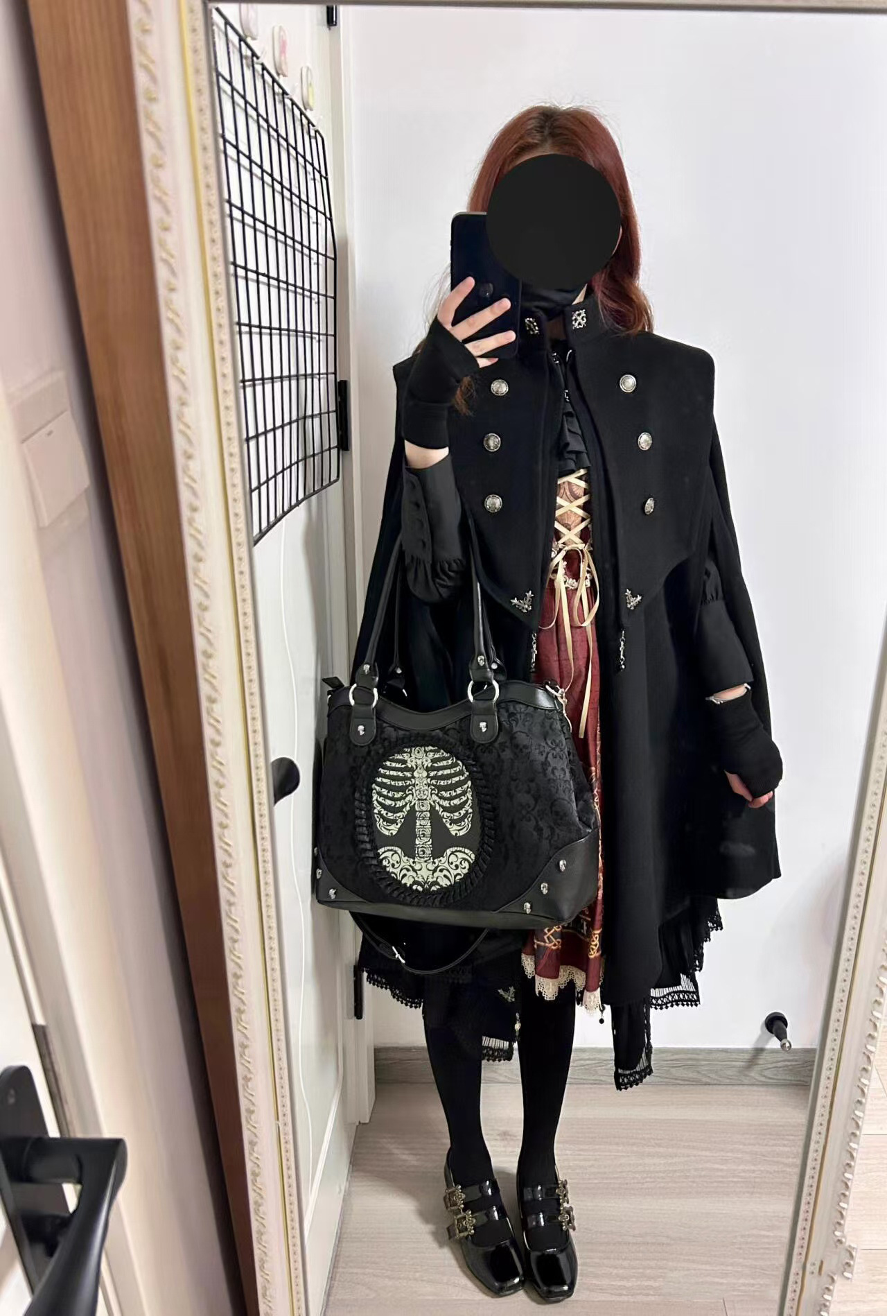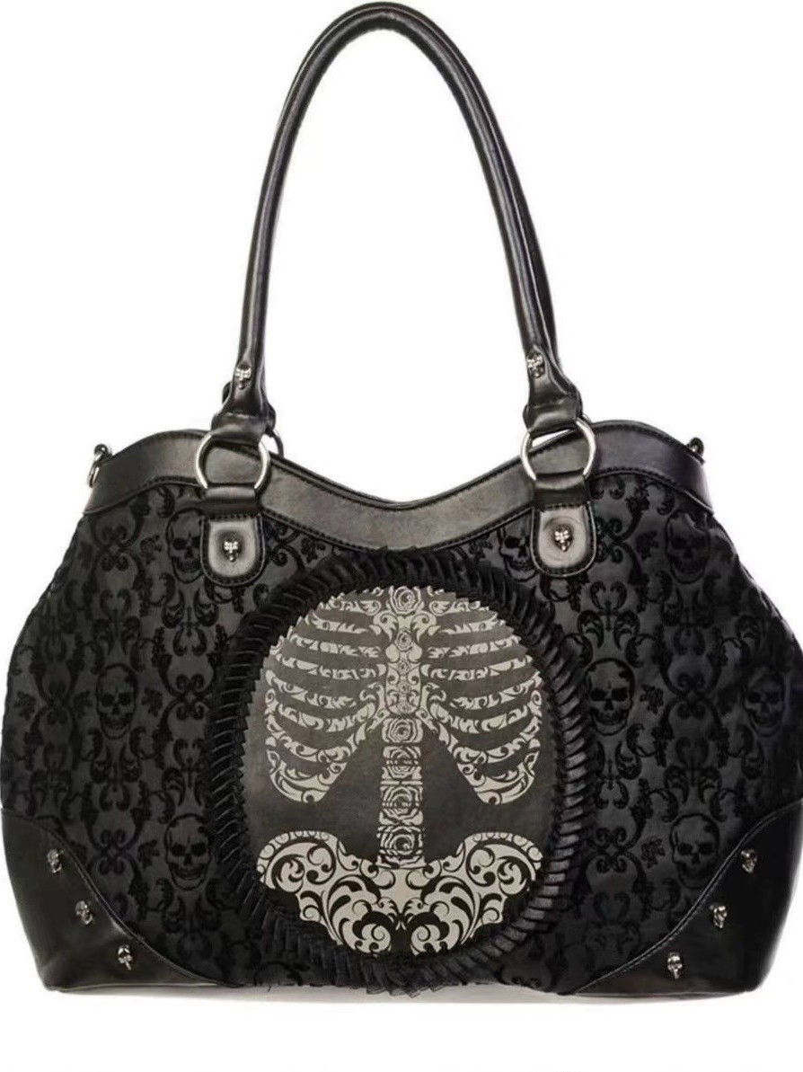 Gothic Punk Lolita Velvet Handbag with Vintage Lace