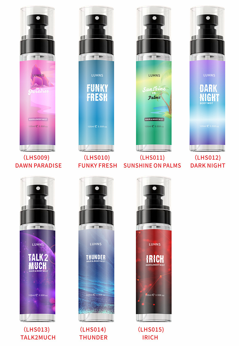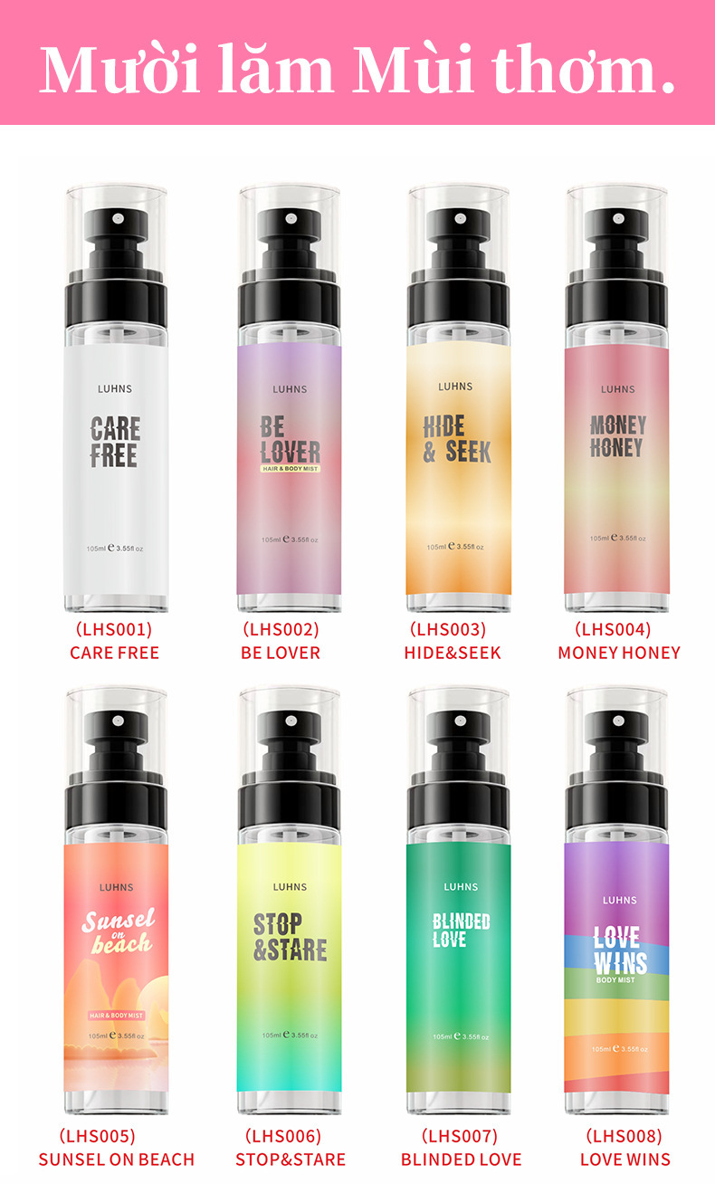 Fragrance Options: 01-CARE FREE, 02-BE LOVER, 03-HIDE&SEEK, 04-MONEY HONEY, 05-SUNSEL ON BEACH, 06-STOP&STARE, 07-BLINDED LOVE, 08-LOVE WINS, 09-DAWN PARADISE, 10-FUNKY FRESH, 11-SUNSHINE ON PALMS, 12-DARK NIGHT, 13-TALK2MUCH, 14-THUNDER, 15-IRICH, 16-1